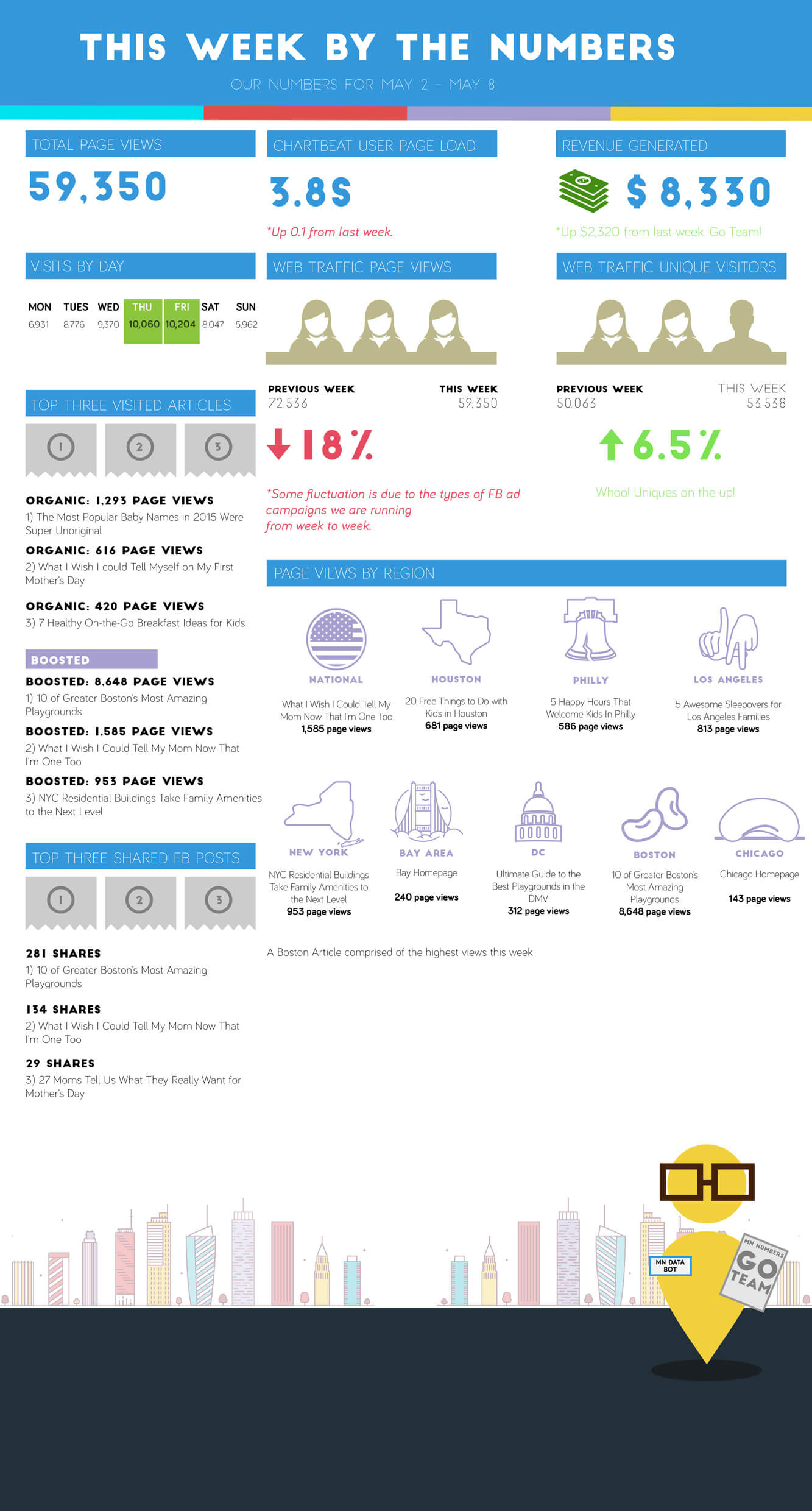 To make sure our iterations were driven by data, I created MN Weekly Numbers where we would dive into numbers over a span of time, then make decisions based on real numbers juxtaposed against our goals.